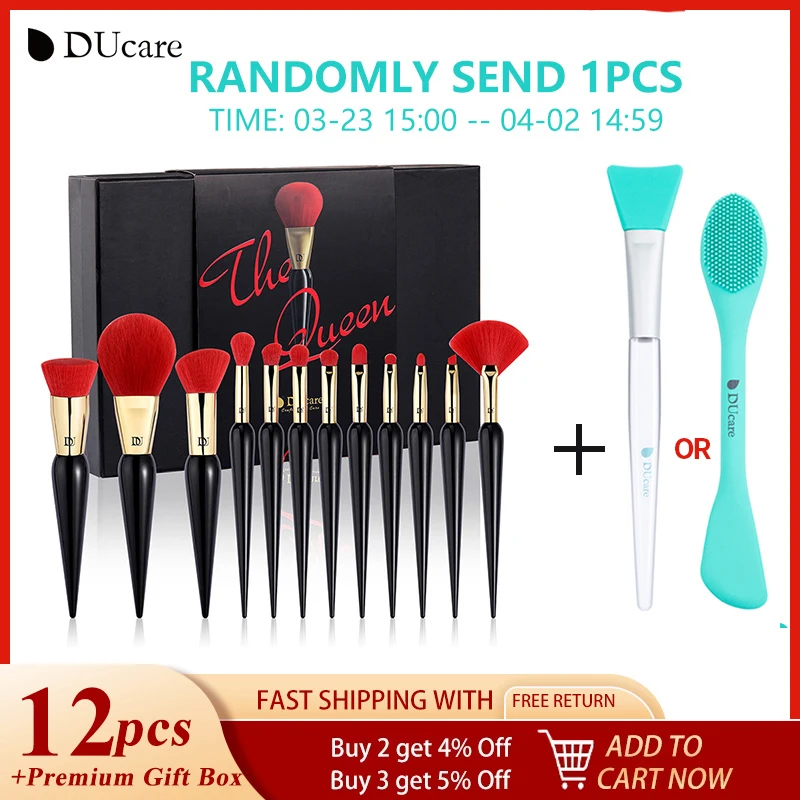 Meilleur Offre pour DUcare – ensemble de pinceaux de maquillage, 12 pièces, série Queen, pour fond de teint, poudre, Blush, fard à paupières, Pro, cadeaux